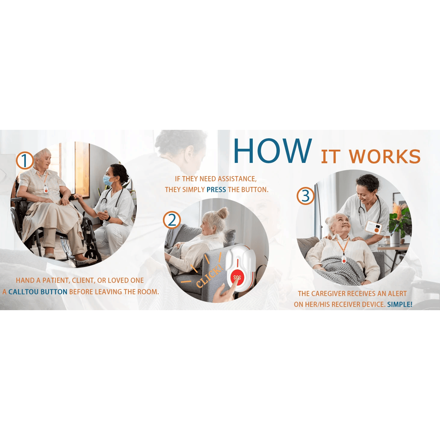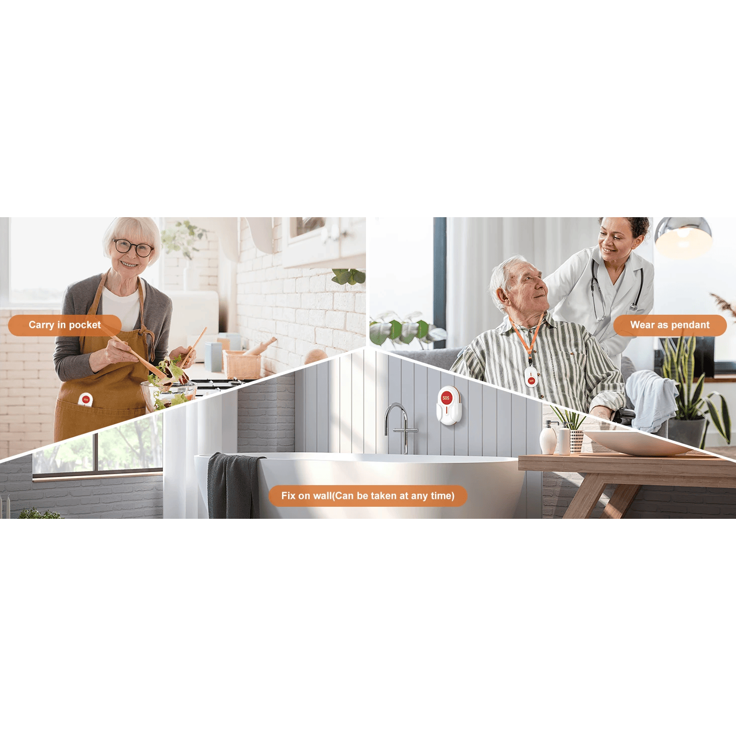 Effective Wireless Coverage: This caregiver pager offers a reliable wireless connection with a range of up to 300mtrs, ensuring seamless communication between caregivers and elderly individuals, even in large spaces.
